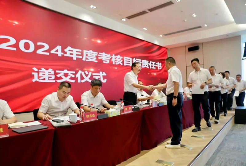 ??? 會(huì)上,集團(tuán)新選聘到位的9家二級(jí)經(jīng)營(yíng)單位主要負(fù)責(zé)人向集團(tuán)黨委書記、董事長(zhǎng)胡磊遞交2024年度考核目標(biāo)責(zé)任書。
