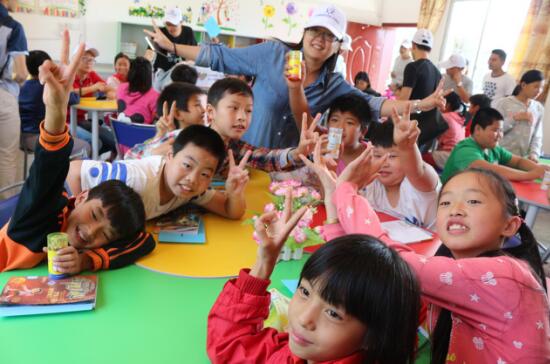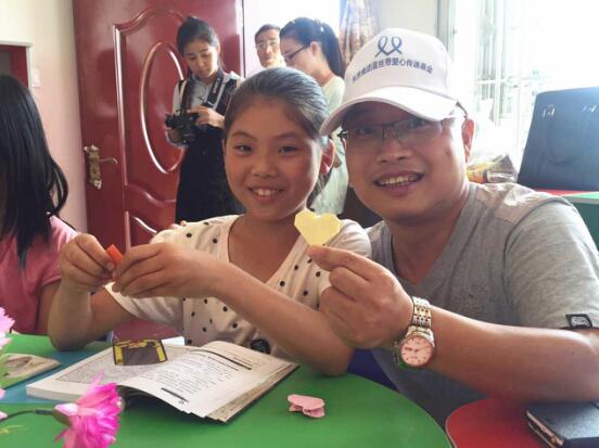 參加活動的志愿者們與孩子們交流讀書心得,為留守兒童們疏導心理,傾聽孩子們的心聲,鼓勵他們面向陽光,用心去感受家人、老師和身邊每一個人的愛。
