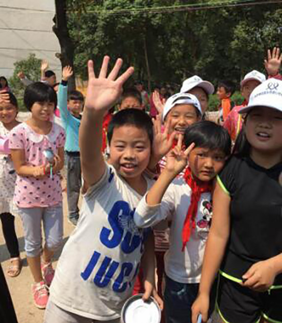 離開的時候,孩子們依依不舍,將志愿者們團團圍住,開心的合影留念。