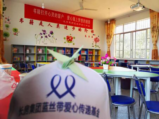 長房集團藍絲帶愛心傳遞基金成立于2007年,由長沙市青少年發(fā)展基金為代為管理。歷年來開展了“小書包,大夢想”、“有愛,夢想才有翅膀”、“情牽抗戰(zhàn)老兵、心系山區(qū)學子”等一系列主題愛心公益活動,積極援建學校、修繕操場、捐贈課桌椅、文體用品,捐建圖書室等,援助學校20余所,受益學生近萬名,累計捐贈愛心助學物資160余萬元,直接資助省內各大高校寒門學子63名。此外,在汶川地震后,為災區(qū)募捐和捐獻共近200萬元。